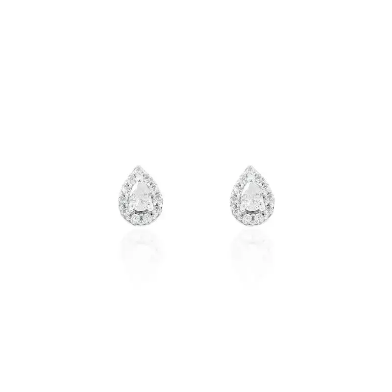 Brinco gota cravejada 2mm, cravação em zircônia em volta, joia em Prata 925, minimalista e perfeita para o dia a dia. Garanta o seu!