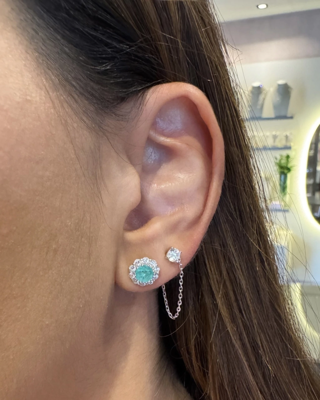 Brinco lapidação redonda cravejado com zircônias em volta, joia em Prata 925. Delicado e minimalista, garanta o seu!